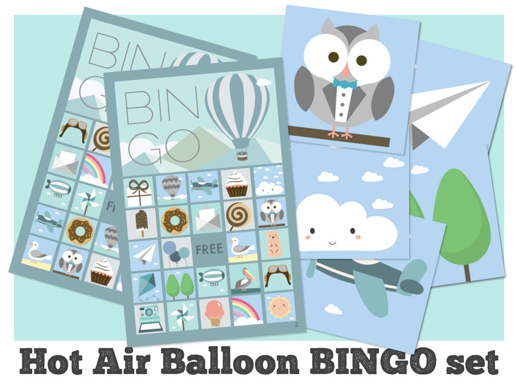 Hot Air Balloon Bingo Game Up Up And Away Bingo Game Hot Air Etsy