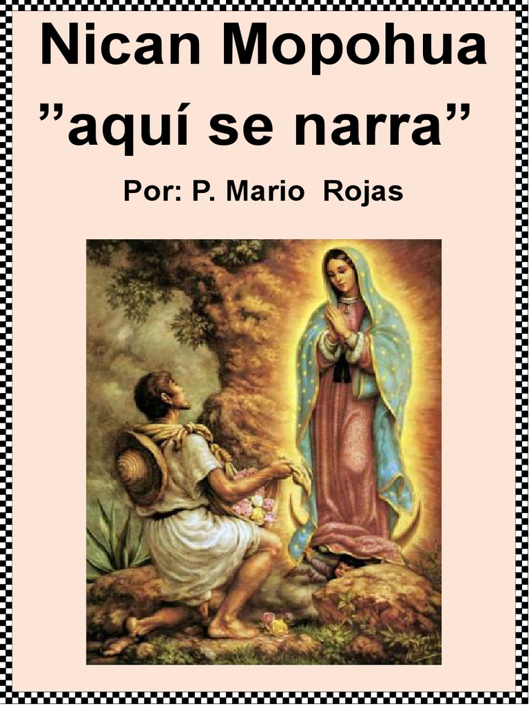 . Web Descarga el Nican Mopohua en Español y Náhuatl El texto original del Nican Mopohua fue escrito en papel de pulpa de agave como los antiguos códices aztecas. Web 7 And as he drew near the little hill called Tepeyac it was beginning to dawn. Auh in acico in inahuac tepetzintli in itocayocan Tepeyacac ye tlatlalchipahua 7 Y al llegar cerca del.